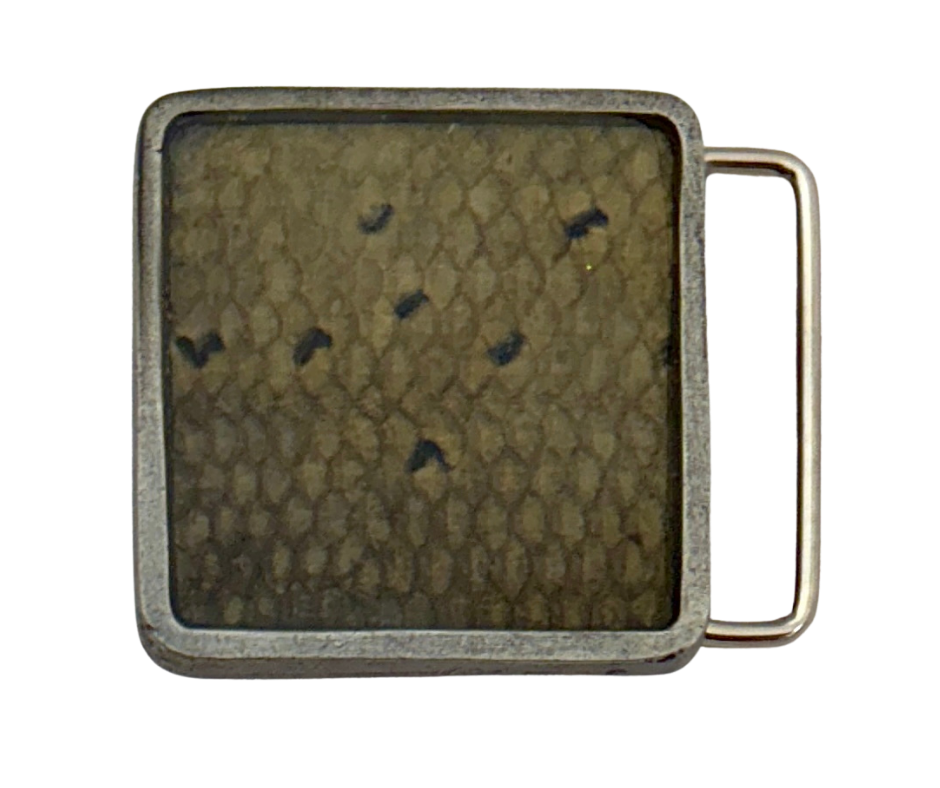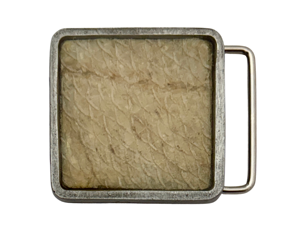 PEWTER BELT BUCKLE, VARIOUS FISH SKIN